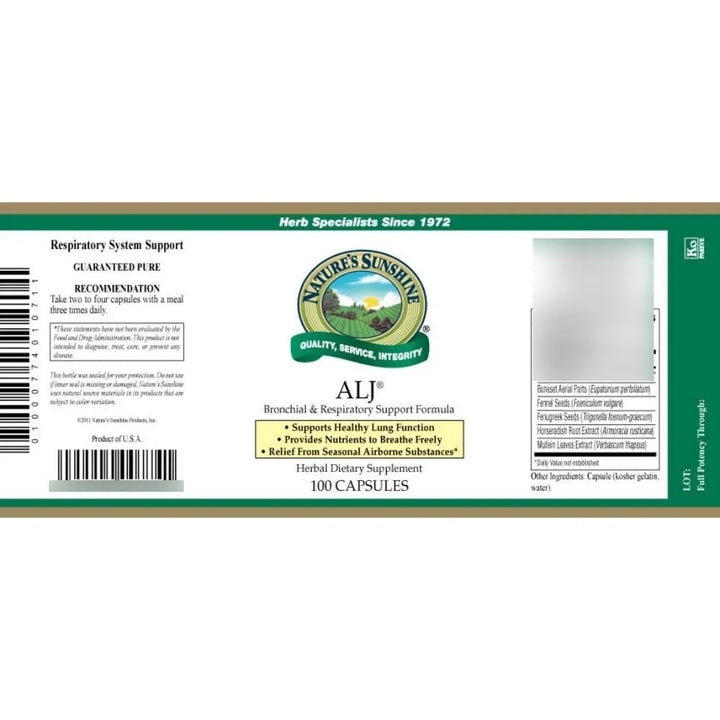 Las cápsulas Alj Naturales actúan directamente sobre tu sistema respiratorio, proporcionando los nutrientes esenciales que necesita para funcionar óptimamente. Sus componentes naturales trabajan en sinergia para limpiar, fortalecer y proteger tus vías respiratorias, creando una barrera contra agentes externos mientras promueven la oxigenación adecuada de tu cuerpo.