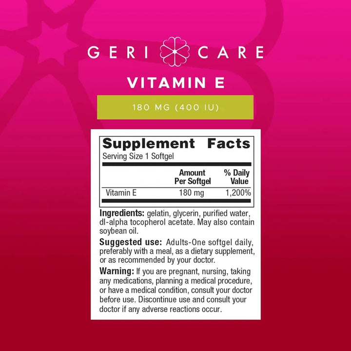 Capsulas Alta Potencia Vitamina E 400 Ui 100 Unidades GeriCare
