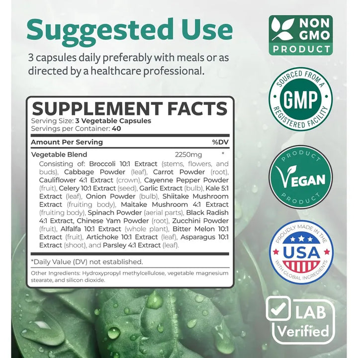 Imagina tener a tu alcance todo el poder de los fitonutrientes, desde la clorofila hasta la alicina. Se ha demostrado que estos compuestos naturales apoyan la salud general y la vitalidad. Con cada dosis, estás tomando un paso más hacia una mejor salud global. Este suplemento está diseñado para absorberse de manera eficiente, lo que significa que cada nutriente entra rápidamente en acción dentro de tu cuerpo.