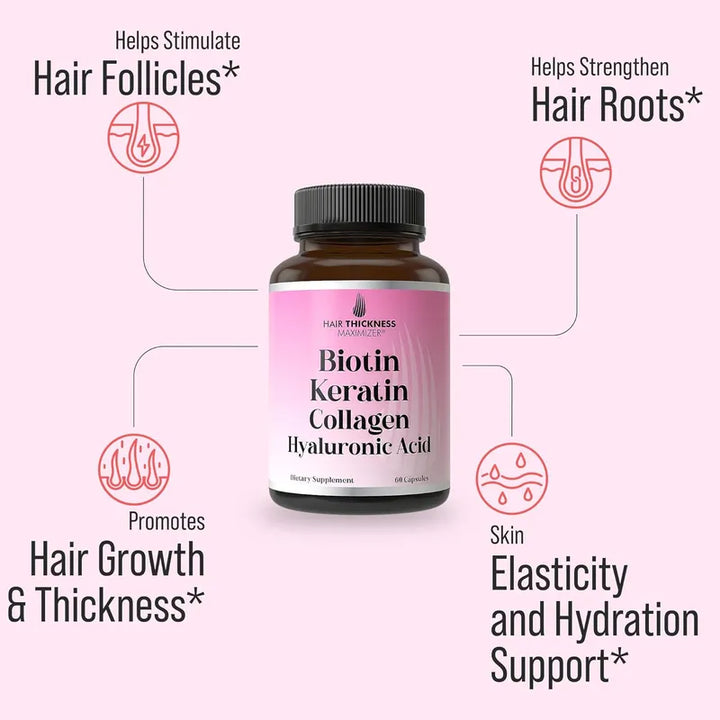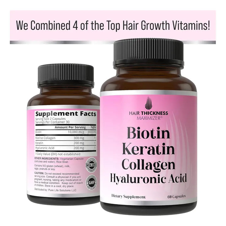 - 🥇 Ultimate Hair Boost: Alimente cada hebra de su cabello con los 10,000 mcg de biotina que contiene en cada cápsula.