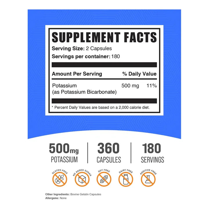 Capsulas Bicarbonato De Potasio 500mg 360 Unidas Hidratacion Optima