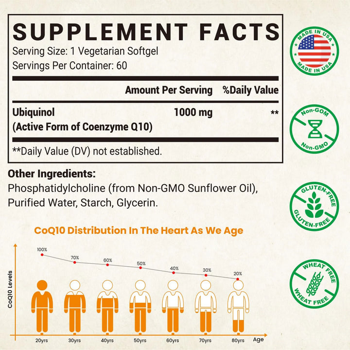 Imagina despertar cada mañana con la energía necesaria para enfrentar tus desafíos, sabiendo que estás cuidando de tu corazón y tu mente con un antioxidante poderoso. Nuestro CoQ10 Ubiquinol no es un suplemento cualquiera; es la elección inteligente para quienes valoran su salud y no están dispuestos a comprometerse con menos de lo mejor.