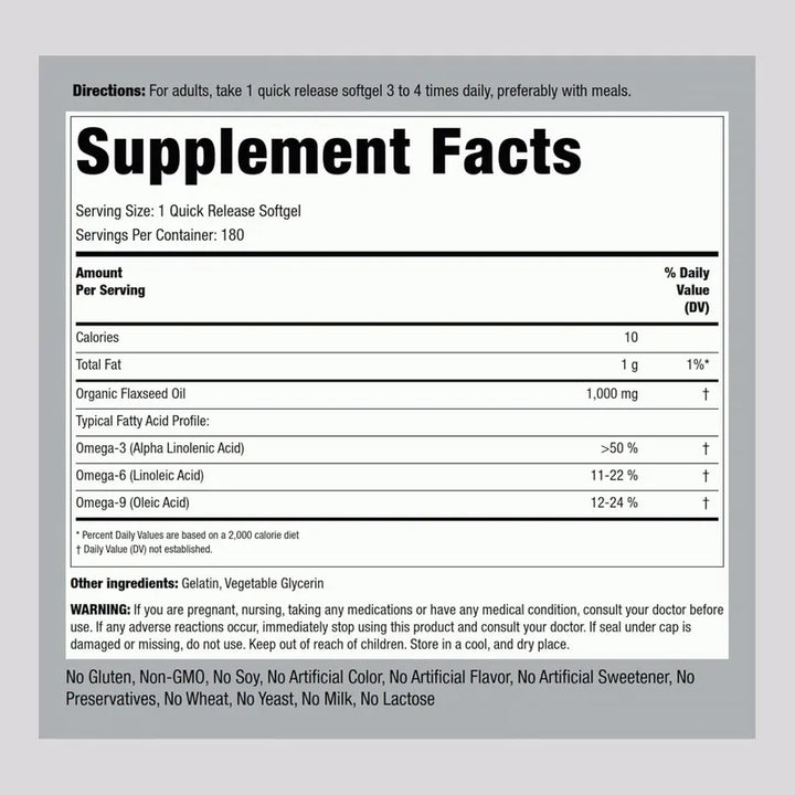 Capsulas Blandas Aceite De Linaza 1000 Mg 180 Unidades Omega 3-6-9