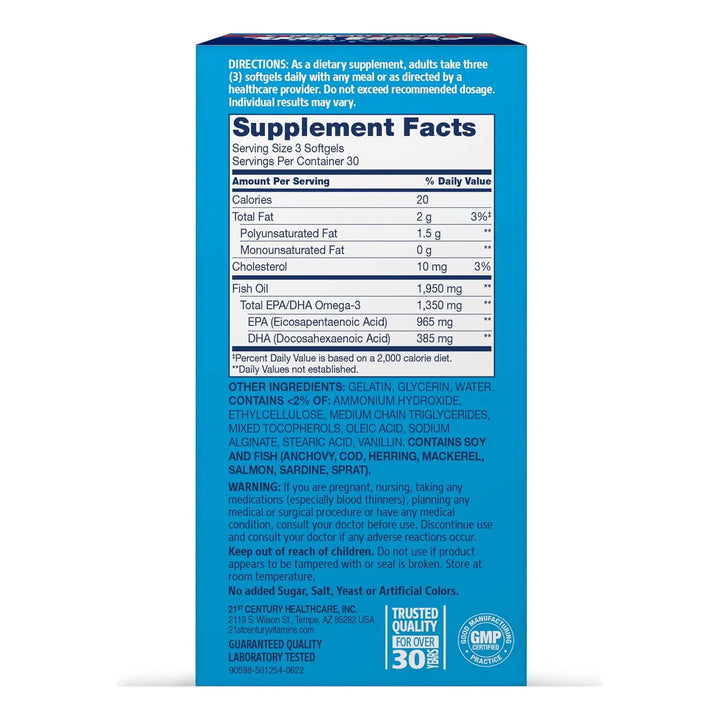 Imagina un suplemento que no solo cuida de tu corazón, sino que también protege tus articulaciones, fortalece tu sistema inmunológico y mejora tu memoria. Las cápsulas blandas de aceite de pescado silvestre de Alaska son tu aliado perfecto para una vida más saludable y equilibrada. Con un proceso exclusivo que preserva la pureza y potencia de los ácidos grasos Omega-3, este producto está diseñado para ofrecerte lo mejor de la naturaleza sin comprometer tu bienestar.