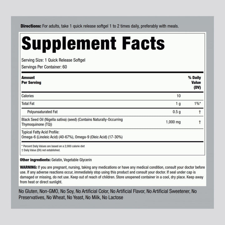 Capsulas Blandas Aceite Semilla Negra 1000 Mg Suplemento Sin Gluten