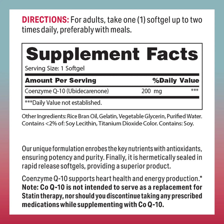 - ❤️ Protección Cardíaca Superior: Apoya la salud de tu corazón con 200 mg de CoQ10 puro, ayudando a mantener un sistema cardiovascular fuerte y resistente.