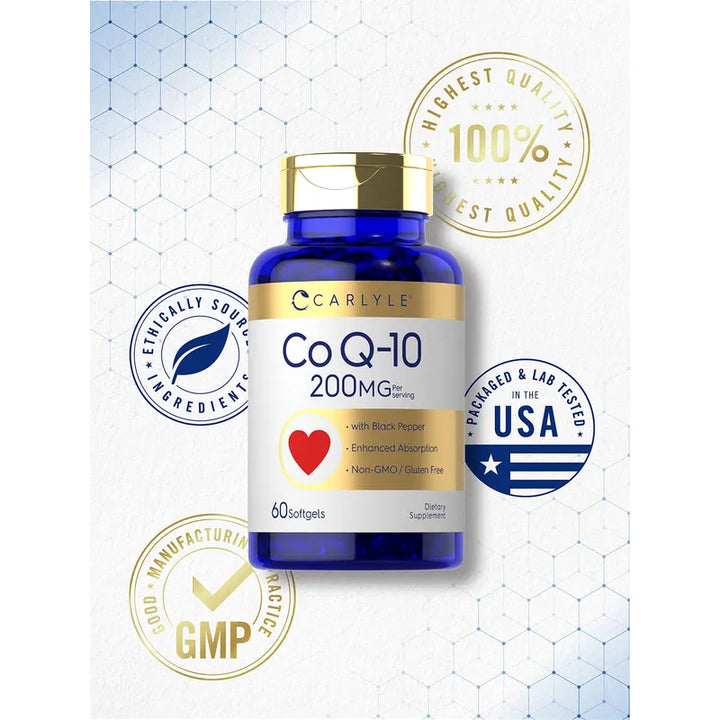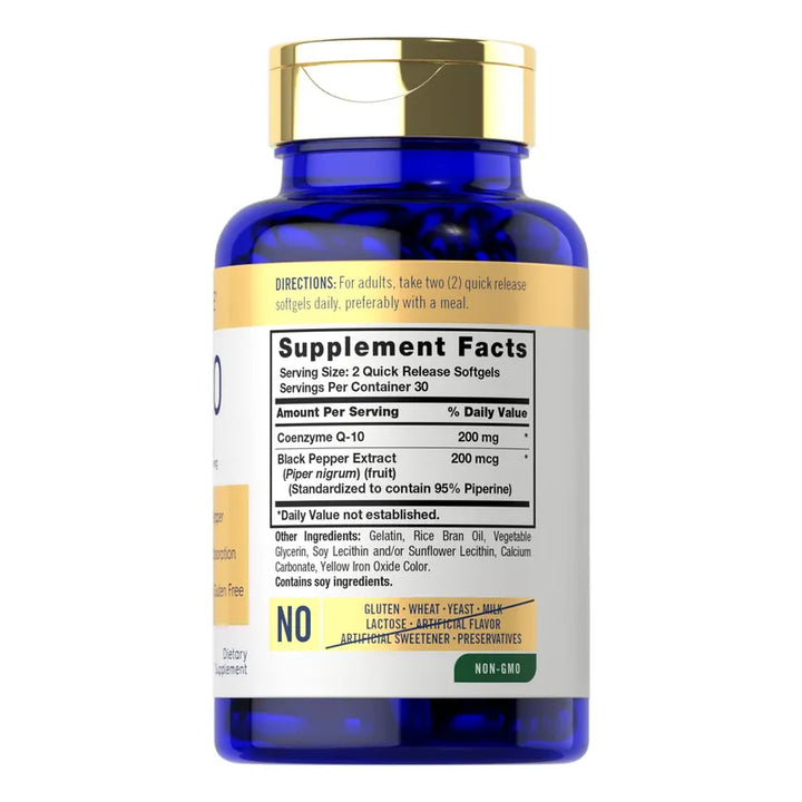 Descubre el poder de las cápsulas blandas CoQ10 de 200 mg con pimienta negra, un suplemento creado para aquellos que buscan una vida más activa y saludable.