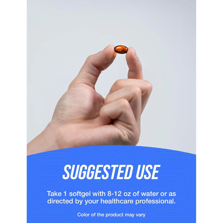 - Consume 1 cápsula blanda al día, preferiblemente con una comida que contenga grasas saludables para mejorar su absorción.