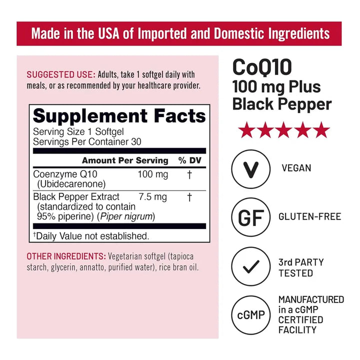 La adición de BioPerine, un poderoso extracto de pimienta negra, no solo mejora la absorción de nutrientes sino que incrementa la biodisponibilidad de CoQ10, asegurando que cada dosis sea perfectamente asimilada y maximizando su eficacia. No más desperdicio de nutrientes, solo resultados visibles y tangibles en tu bienestar diario. 💪