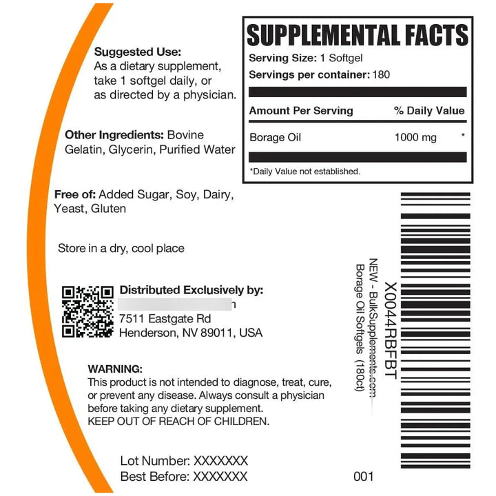 Cápsulas Blandas De Aceite De Borraja 1000 Mg Suplemento De Ácido Gamma Linolénico Sin Gluten