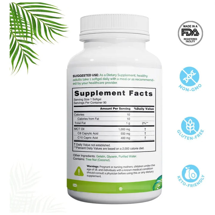 Las cápsulas aprovechan el poder de una mezcla precisa de ácido caprílico C8 y ácido cáprico C10, ambos ingredientes clave para promover la producción de cetonas, esenciales en una dieta cetogénica. Esto significa menos antojos y una mejor capacidad para quemar grasa como combustible, manteniéndote lleno de energía por más tiempo y ayudando a controlar tu peso de manera efectiva.