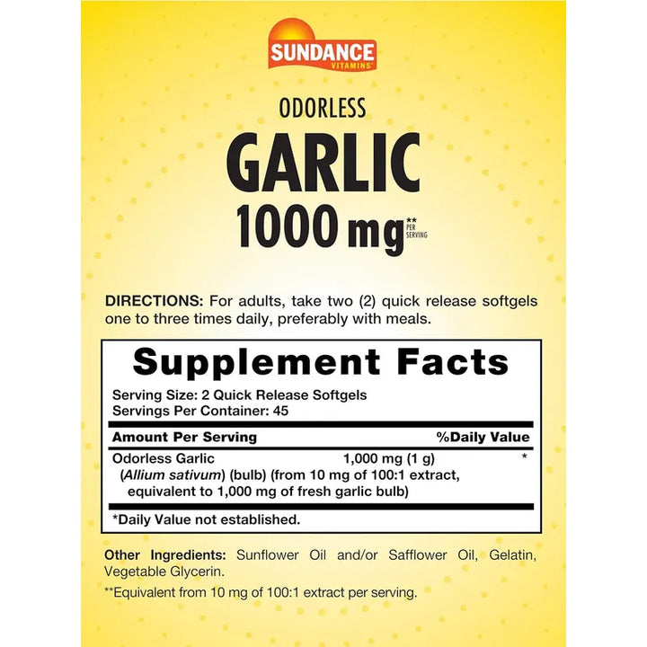 Imagina un mundo donde incorporar los beneficios del ajo a tu vida diaria es simple, conveniente y sobre todo, sin el molesto olor. Las Cápsulas Blandas de Ajo de 1000 mg de Sundance ofrecen justo eso. Te invitamos a dar el paso hacia una vida más saludable de una manera fácil y sin complicaciones.