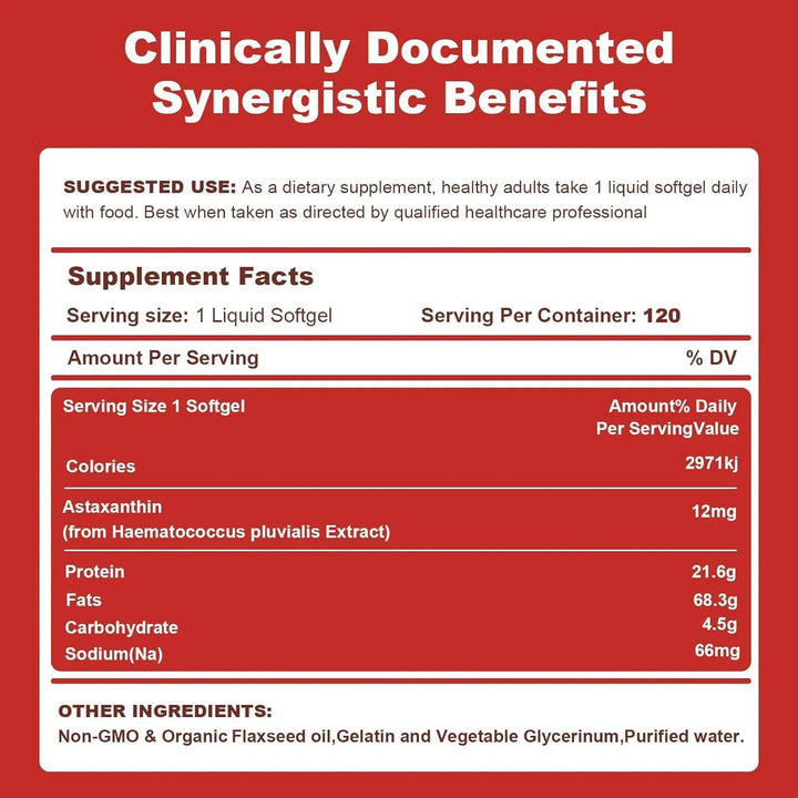 - 12 mg de Astaxantina Pura: La dosis perfecta para resultados visibles. 💊