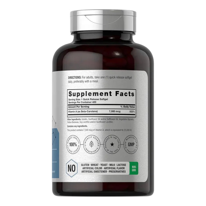 Las cápsulas blandas de beta-caroteno liberan rápidamente el suplemento en tu organismo, ofreciendo un boost inmediato de vitamina A sin comprometer la calidad o pureza.