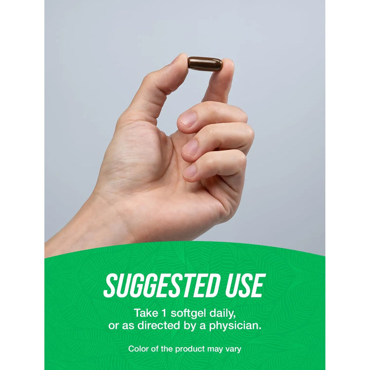 - Toma 1 cápsula blanda al día, preferiblemente con tu comida principal.