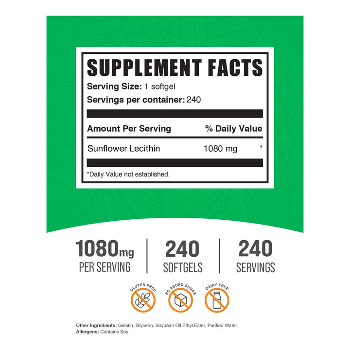 - 🌿 Nutrición Pura y Natural: Cada cápsula contiene 1080 mg de lecitina de girasol, libre de gluten y llena de nutrientes esenciales para tu cuerpo.
