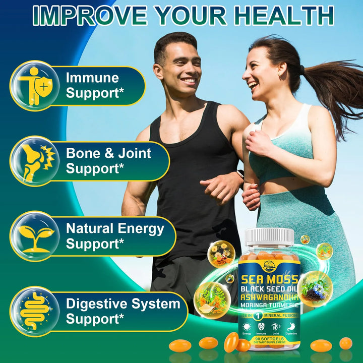 Transforma Tu Salud Con Las Cápsulas Blandas De Musgo Marino Y Aceite De Semilla Negra
