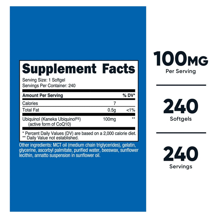 Cápsulas Blandas De Ubiquinol 100 Mg 240 Unidades Antioxidante Superior CoQ10