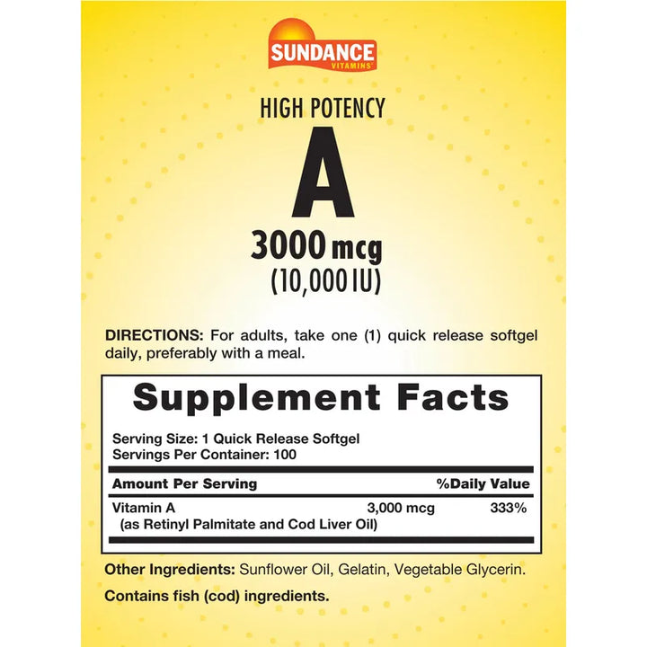 La vitamina A es clave para mantener tu sistema inmunológico fuerte, mejorar la vista y promover una piel radiante. Imagina despertarte cada día sintiéndote enérgico y seguro de que estás cuidando de tu cuerpo como merece. No más preocupaciones sobre déficits nutricionales, ya que nuestras cápsulas blandas ofrecen 3,000 mcg de vitamina A por porción, que se traducen en 10,000 UI, cumpliendo con tus necesidades diarias de manera eficiente.
