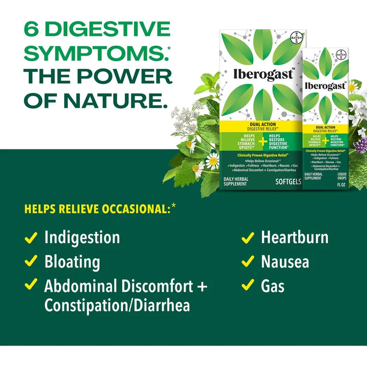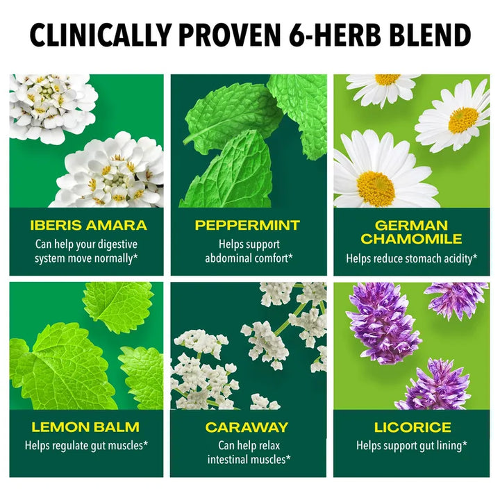 - Poder natural: Nuestros ingredientes han sido cuidadosamente seleccionados, ayudando a que tu estómago vuelva a la normalidad con Iberis amara, menta y más.