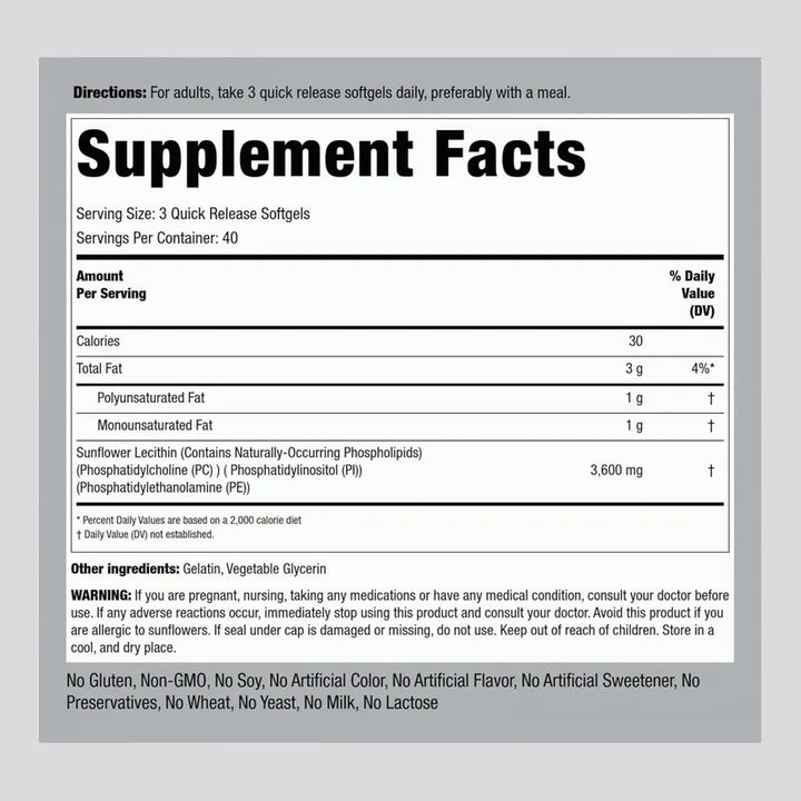 Capsulas Blandas Lecitina De Girasol 3600 Mg 120 Unidades Sin Soja Ni Gluten