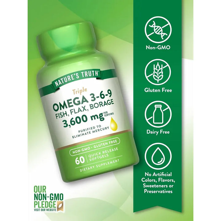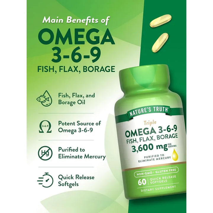 Empezar a cuidar de tu salud es una decisión valiente. Al elegir Nature's Truth Triple Omega 3-6-9, te rodeas de la sabiduría de generaciones dedicadas a la innovación en suplementos. Es el momento de regalarle a tu cuerpo los beneficios que merece. Deja que estos Omegas se conviertan en parte de tu rutina diaria para desbloquear un nuevo nivel de bienestar y vitalidad.
