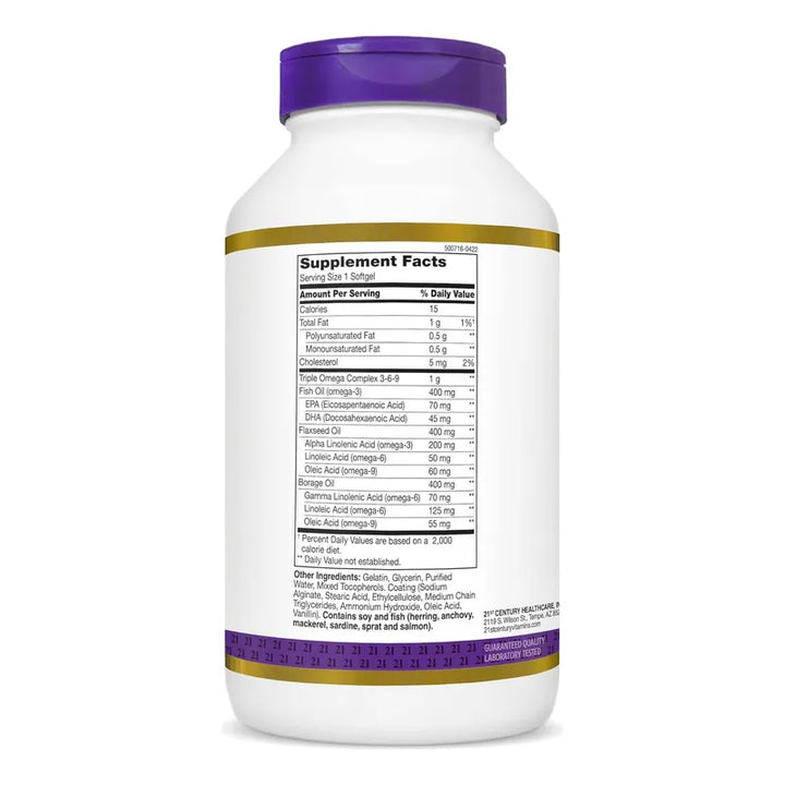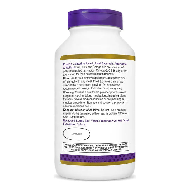 Cápsulas Blandas Omega 3 6 9 Revestimiento Entérico 180 Unidades Saludable