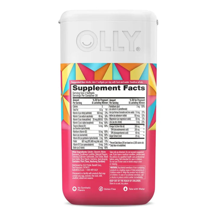 Capsulas Blandas Prenatales Olly Multivitaminicas Con Dha Crecimiento Saludable
