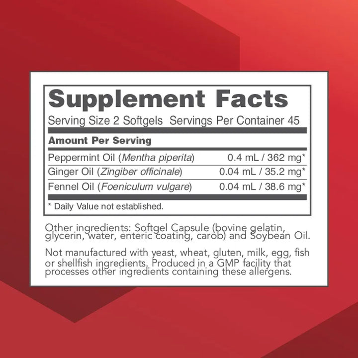 Las cápsulas aprovechan las propiedades naturales del aceite de menta, jengibre e hinojo, liberándolos estratégicamente en tu intestino gracias a su recubrimiento entérico. Este enfoque asegura que el alivio sea inmediato y específico donde más lo necesitas.