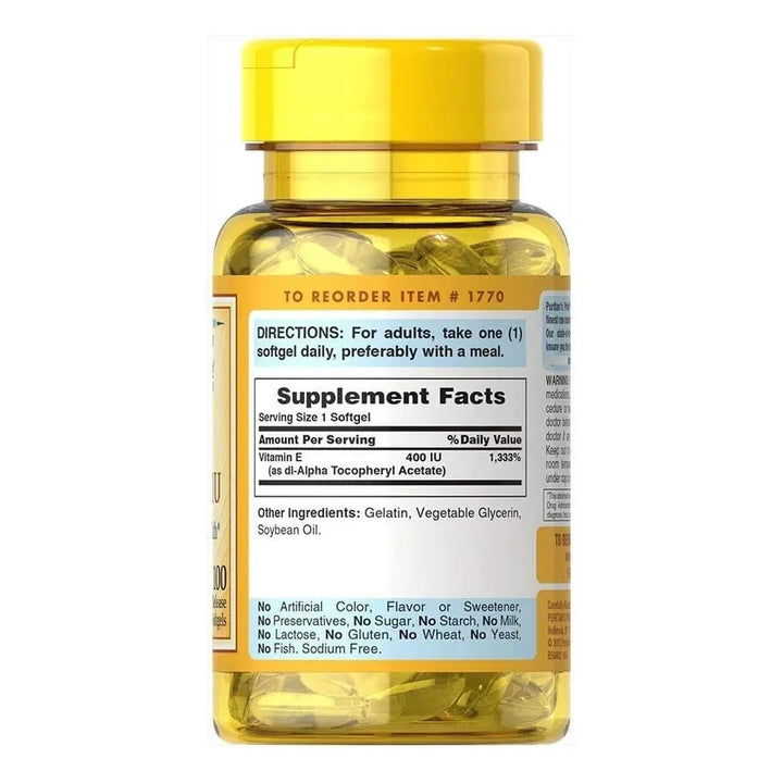Capsulas Blandas Vitamina E 400 Ui Puritan's Pride Antioxidante Natural