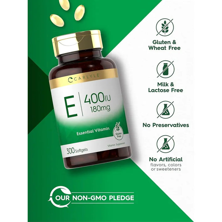 La fórmula experta de Carlyle está diseñada para ofrecer un apoyo nutricional premium. Cada cápsula blanda de liberación rápida proporciona 400 UI de vitamina E, asegurando que recibas la cantidad adecuada de este nutriente esencial. Puedes tener la certeza de que este producto es naturalmente libre de gluten, soja, lactosa, conservantes y sin OMG, una opción superior para quienes buscan productos de alta calidad en su régimen de salud.