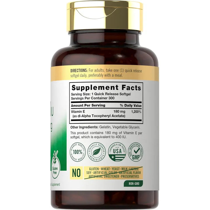 Con más de 300 cápsulas por envase, este suplemento no solo es efectivo sino que también es increíblemente económico, brindándote una solución de largo plazo para mantener tu salud sin sobrepasar tu presupuesto. Introduce las Cápsulas Blandas de Vitamina E de Carlyle en tu rutina diaria y experimenta la diferencia.
