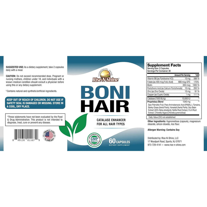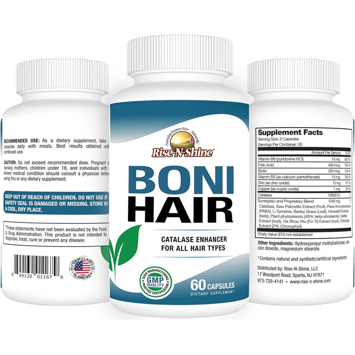 Imagina despertar cada mañana con un cabello que refleja salud y energía, sin preocuparte por el paso del tiempo. Nuestro suplemento está diseñado para apoyar tu cuerpo con una de las concentraciones más altas de catalasa disponibles, combinada con ingredientes poderosos como la palma enana americana, biotina, fo-Ti y PABA. Esta fórmula única no solo ayuda a mantener el color natural de tu cabello, sino que también promueve su fuerza y brillo desde dentro hacia afuera.