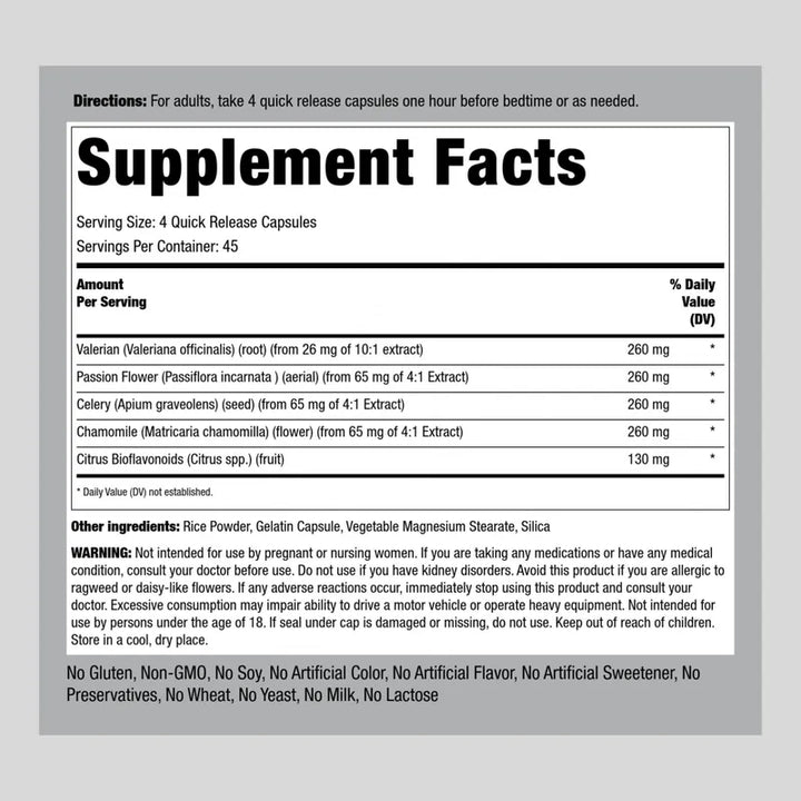 Cápsulas Calmantes De Hierbas Sin OMG Con Manzanilla 180 Píldoras