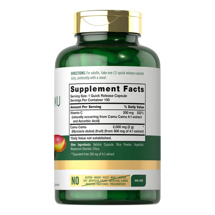 Esta no es cualquier vitamina C. Al provenir del Camu Camu, una fruta tropical amazónica, obtienes un soporte rico en bioflavonoides que mejora tus capacidades antioxidantes naturales. Cada cápsula de liberación rápida está diseñada para ofrecerte 2,000 mg de bienestar puro.