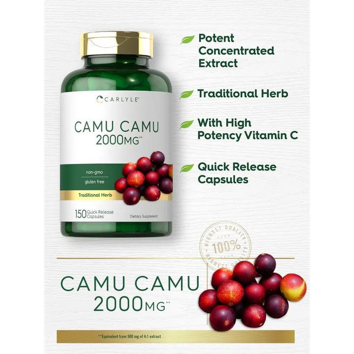 Capsulas Camu Camu 2000mg Vitamina C Energizante Libre De Gluten