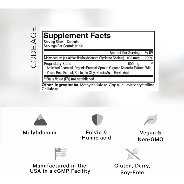 Nuestro suplemento actúa en tres fases clave: absorción, unión y eliminación. El carbón activado y la arcilla de bentonita atraen y capturan toxinas en el tracto digestivo. Los ácidos fúlvicos y húmicos facilitan la liberación de nutrientes, mientras que el molibdeno apoya las enzimas que participan en la desintoxicación. El resultado es una limpieza profunda que te ayuda a sentirte renovado.