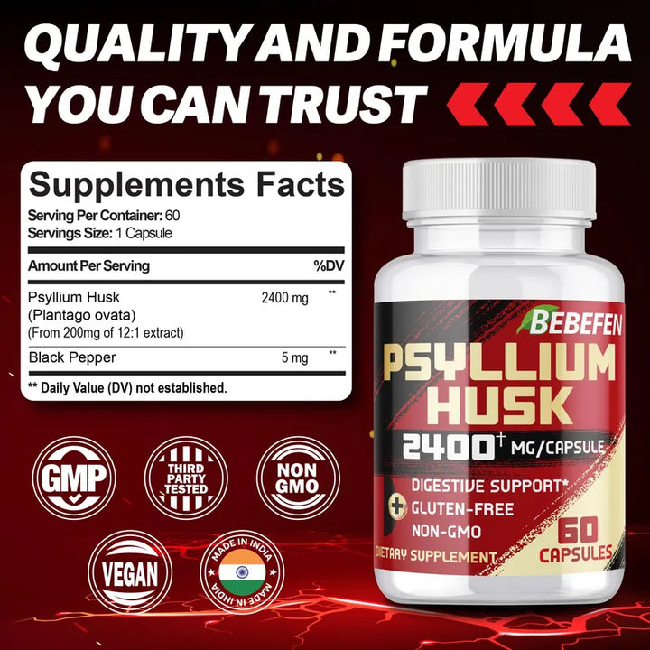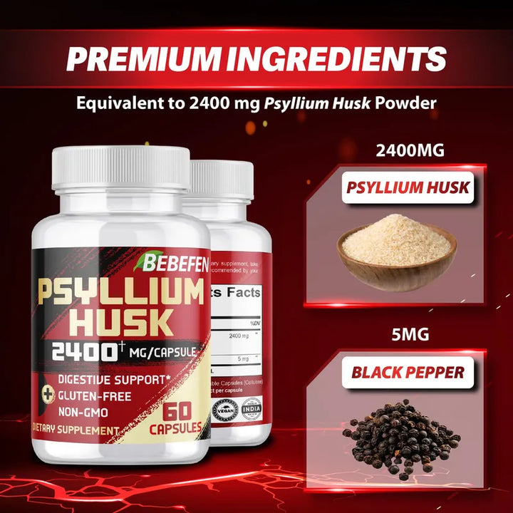 - Altamente Concentrado: Cada cápsula equivale a 2400 mg de cáscara de psyllium. 🌟