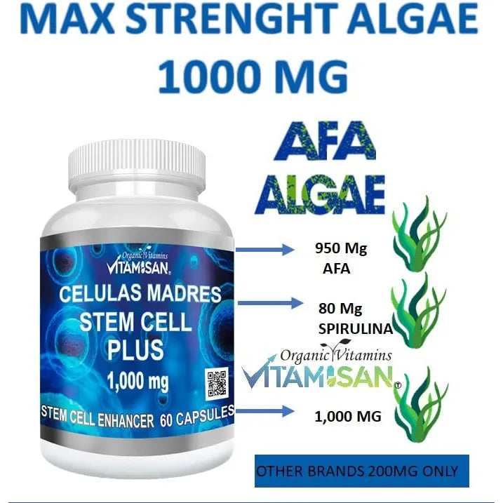 Capsulas Celulas Madres 1000mg Algas Verdeazuladas Suplemento Natural