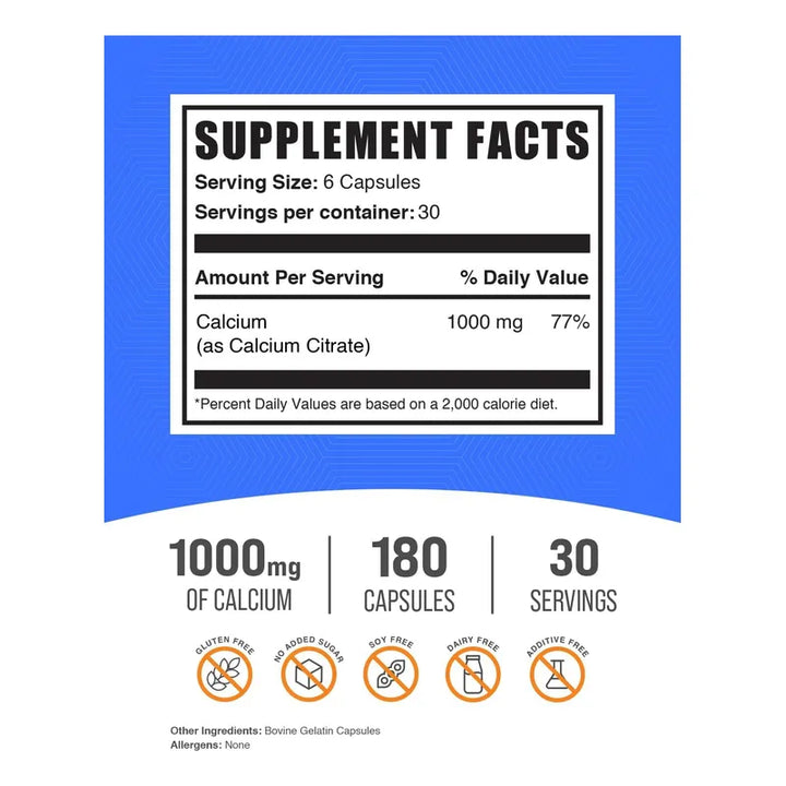 Nuestras cápsulas de citrato de calcio tienen como función principal asegurar que tu organismo obtenga el calcio necesario para diversas funciones corporales críticas. Estas cápsulas proporcionan los bloques de construcción fundamentales necesarios para mantener huesos y dientes fuertes, al mismo tiempo que apoyan la función muscular y nerviosa.