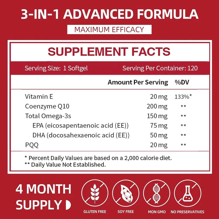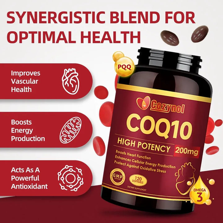 Imagina un suplemento que no solo cuide de tu salud cardíaca y energética, sino que también mejore tu vitalidad general y te aporte bienestar completo. Las Cápsulas de CoQ10 de 200 mg con PQQ y Omega 3 son justo lo que necesitas para alcanzar esa transformación. En un mundo lleno de opciones, ¿por qué conformarte con menos?