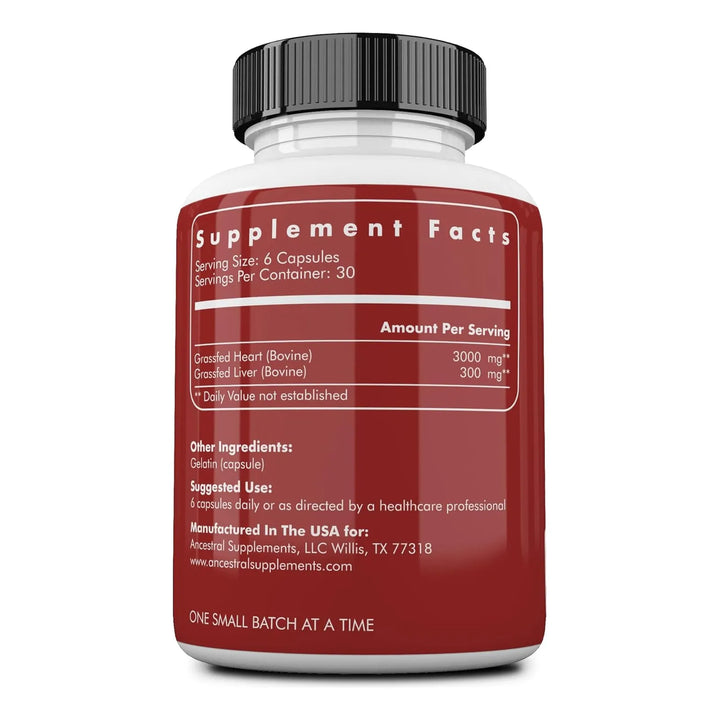 ¿Te has sentido fatigado, sin energía para enfrentar el día? La vida moderna nos ha alejado de los nutrientes vitales que nuestro cuerpo necesita. Este suplemento, elaborado con corazón e hígado de res 100% alimentada con pasto, es una fuente concentrada de CoQ10, proteínas específicas para el músculo cardíaco, B12, colágeno y elastina. Cada cápsula es un paso hacia una salud óptima, respaldada por la pureza y la tradición.