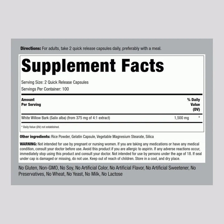 Capsulas Corteza De Sauce Blanco 1500 Mg 200 Unidades Herbales Potentes
