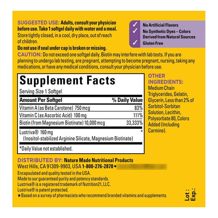 Cápsulas Crecimiento Cabello Lustriva Biotina Vitamina C Y A 30 Unidades