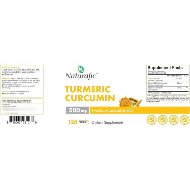 La curcumina, el compuesto activo de la cúrcuma, es conocido por sus propiedades antioxidantes y antiinflamatorias. Al combinarla con piperina, un compuesto de la pimienta negra, se incrementa su absorción en el cuerpo hasta en un 2000%. Esto significa que cada cápsula trabaja de manera más eficiente para brindarte los beneficios deseados.