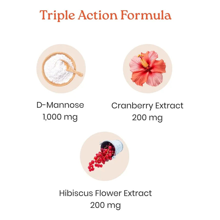 - Emocionante poder de triple acción: La combinación única de D-manosa, arándano y hibisco te ofrece un triplete de ventajas.