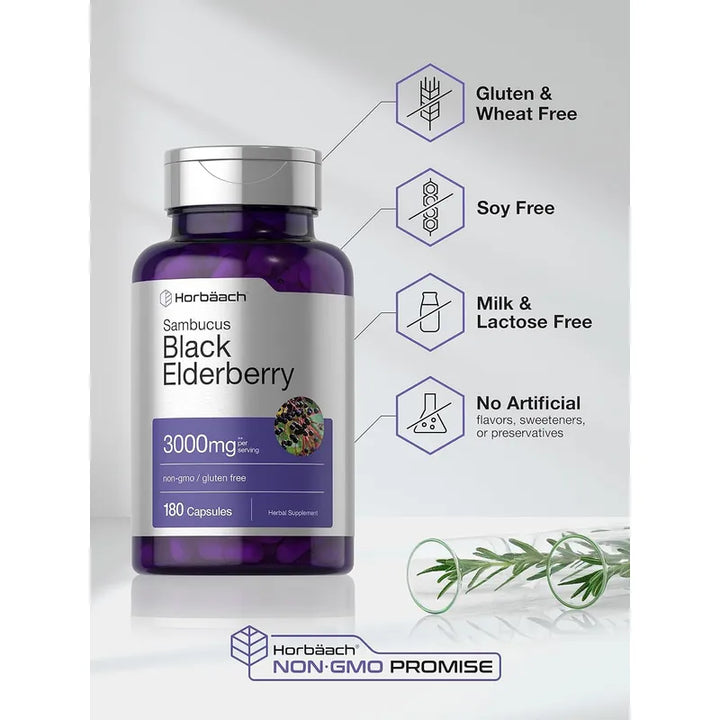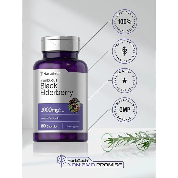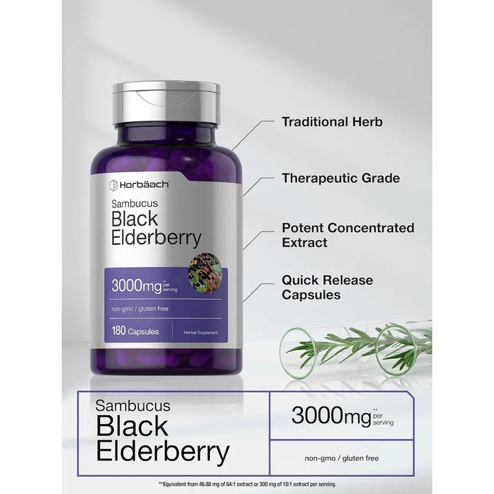 Capsulas De 2000 Mg De Sambucus 180 Unidades Suplemento Natural Horbaach