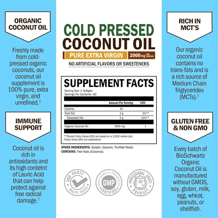¿Buscas una transformación natural y saludable? 🌿 Descubre las Cápsulas de Aceite de Coco Orgánico de 2000mg, el aliado perfecto para tu bienestar. Imagina un producto que no solo te ayuda a mantener tu piel radiante, sino que también fomenta la salud cerebral, favorece la pérdida de peso y mejora el crecimiento de tu cabello. Estas cápsulas son más que un simple suplemento, son la esencia pura de la naturaleza, prensadas en frío para preservar su frescura y efectividad.