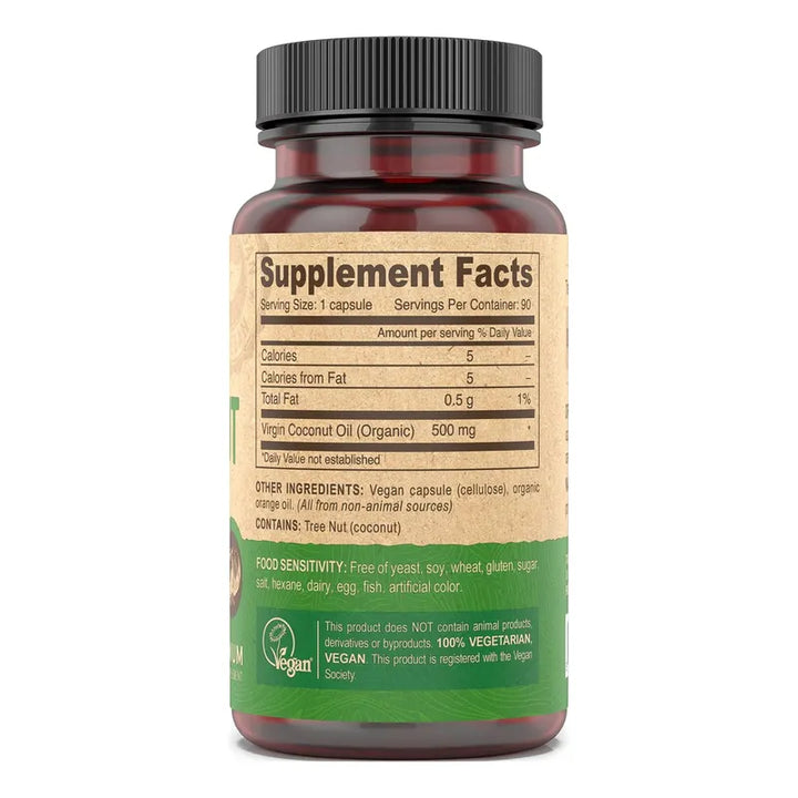 Con ingredientes orgánicos y no refinados, aseguras la pureza y frescura en cada cápsula, dándote la confianza de que lo que consumes es de la mejor calidad posible 🥥.