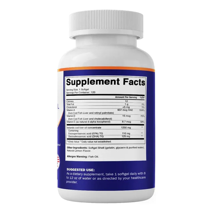 Capsulas De Aceite De Hígado De Bacalao Noruego 1250 Mg 120 Unidades